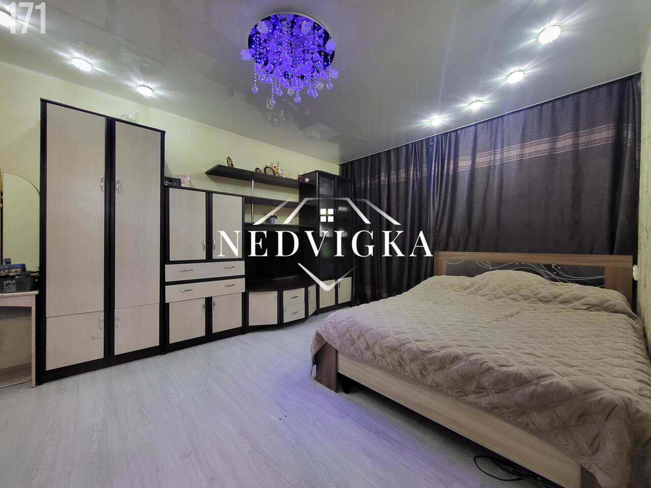- потолок натяжной, с точечным освещением по всему периметру