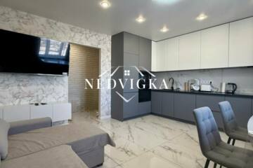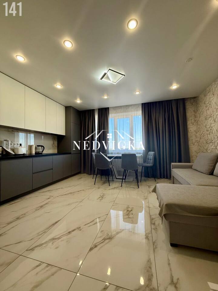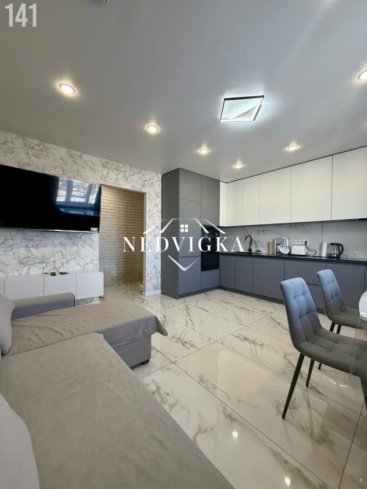 ◻️В квартире выполнен современный дизайнерский евроремонт продуманный до мелочей. Установлены евробатареи, евроокна. Стены ровные. Полы выровнены бетонной стяжкой, покрытые ламинатом и керамогранитом. Установлены натяжные потолки. Санузел раздельный. Стены и пол в ванной комнате и туалете выложены керамогранитом. Новая сантехника и электрика. Установлены датчики протечки воды, тёплый пол в коридоре, гостинной, санузлах, мастер-выключатель, который обес7точивает всю квартиру, кроме холодильного оборудования и датчиков протечки воды, а также роутера.